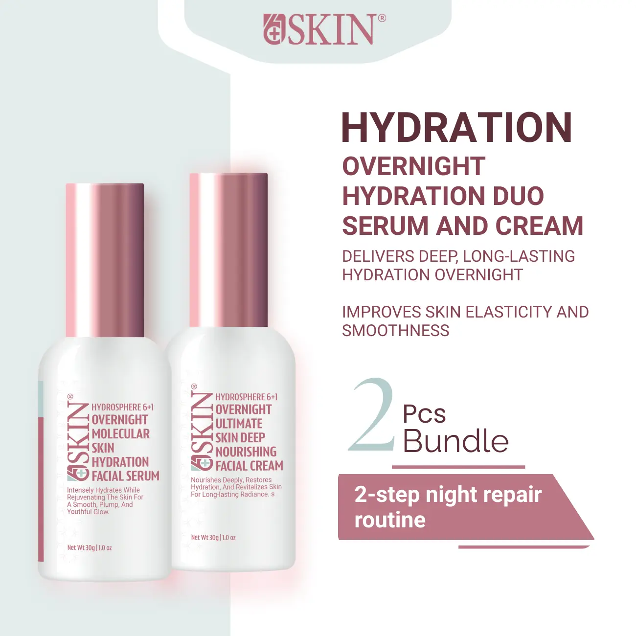 The Hydrosphere Overnight Hydration Duo is a powerful 2-step night repair system designed to deeply hydrate, restore, and rejuvenate skin while you sleep.