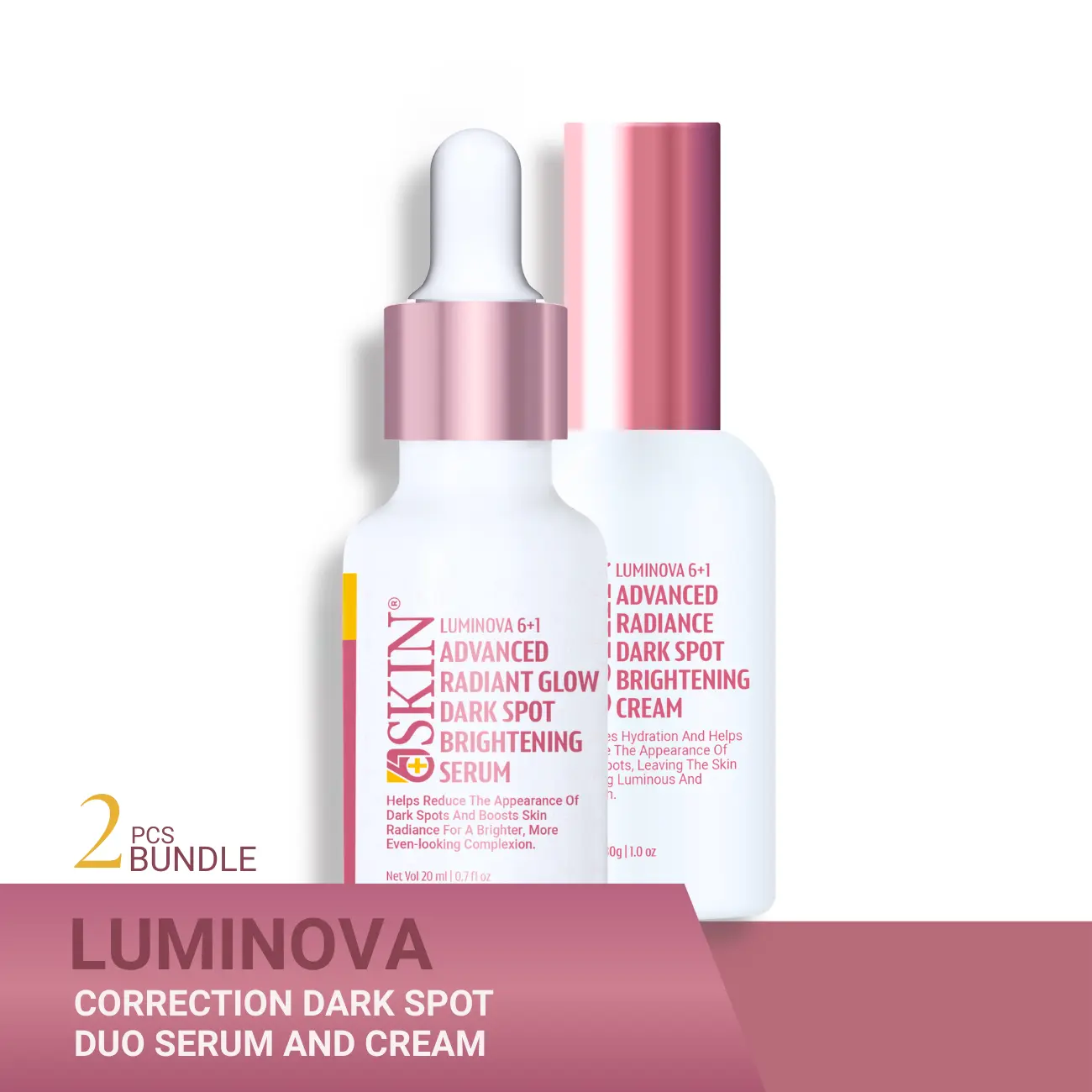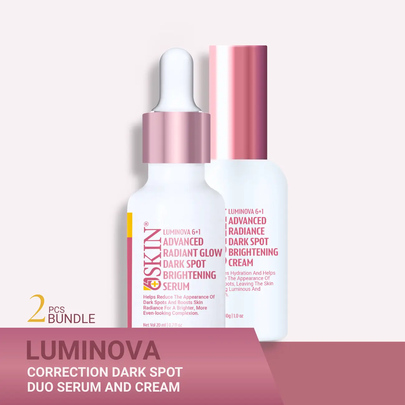 The Luminova Dark Spot Correction Duo is a targeted brightening and tone-correcting system designed to visibly reduce dark spots, uneven skin tone, and discoloration while boosting overall skin radiance.