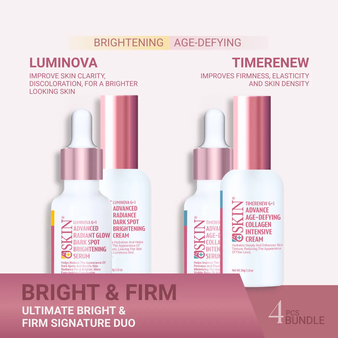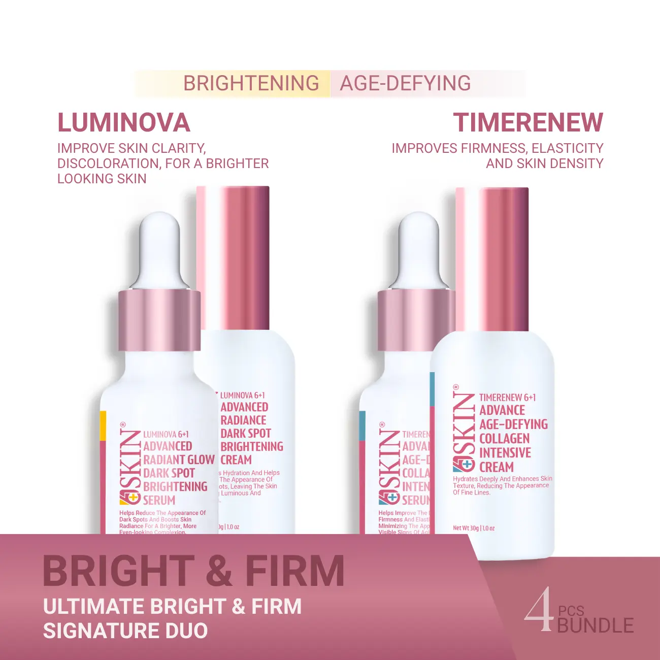 The 6Plus1Skin Luminova – TimeRenew Ultimate Day Bright & Firm Duo is a complete daytime performance skincare system designed to visibly brighten, firm, and refine the skin while supporting long-term anti-aging results.