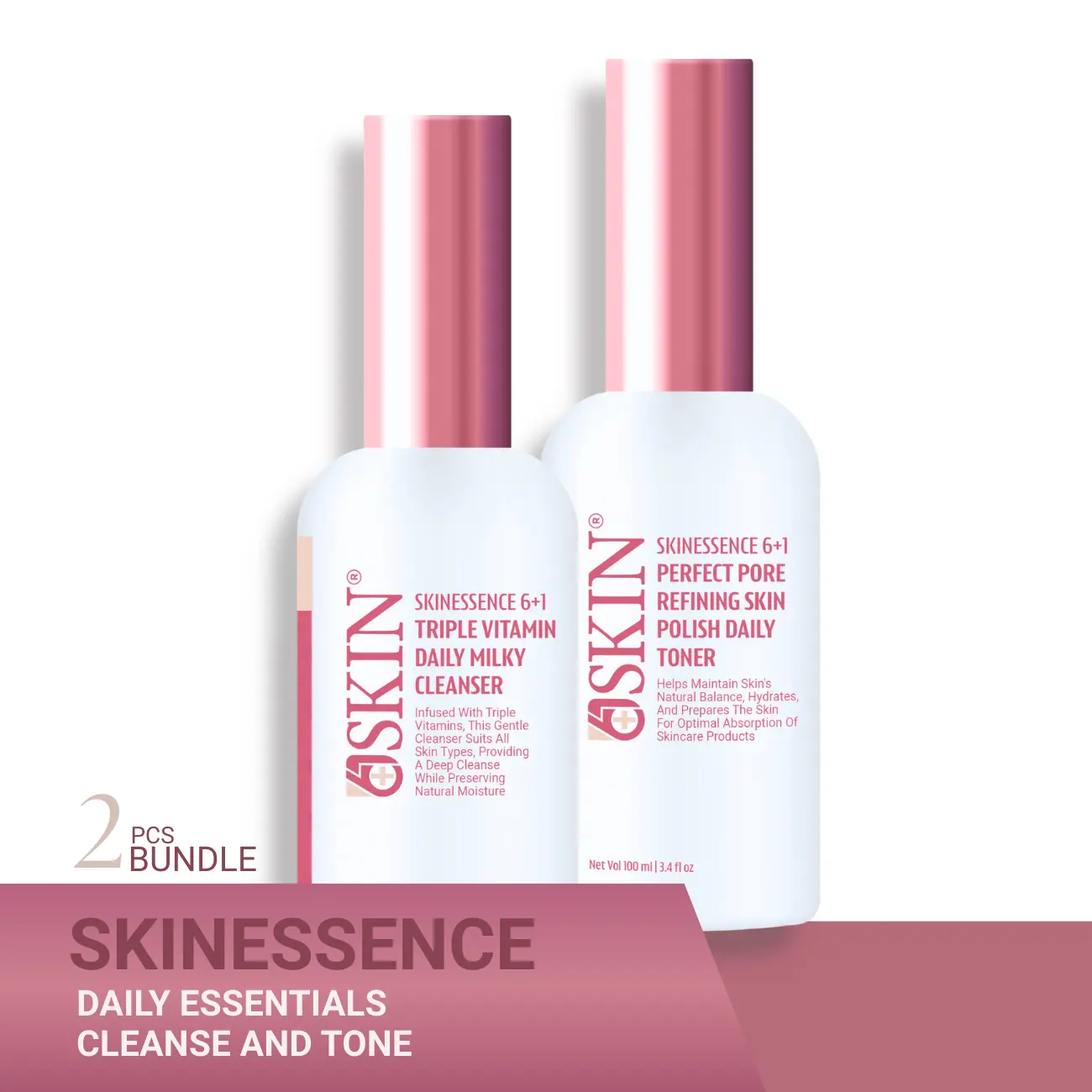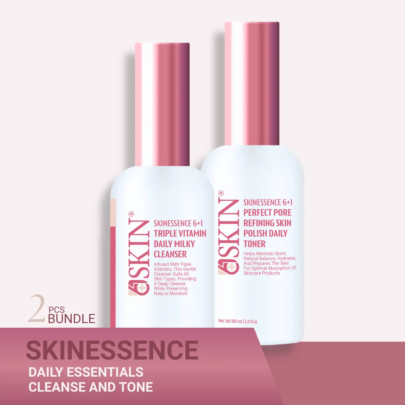 The Skinessence Daily Essentials Cleanse & Tone Set is a simple yet powerful daily skincare foundation designed to gently cleanse, rebalance, and prepare your skin for optimal absorption of follow-up products. This 2-step routine works synergistically to remove impurities, hydrate the skin, refine pores, and restore skin balance—leaving your complexion clean, fresh, and naturally radiant. Suitable for all skin types, especially for those starting a consistent skincare routine or looking for gentle daily care.